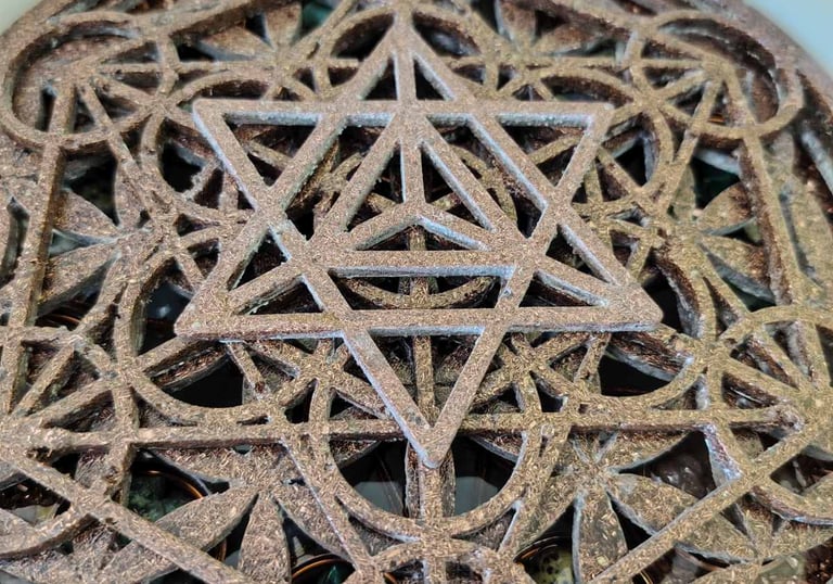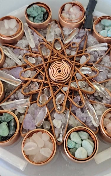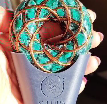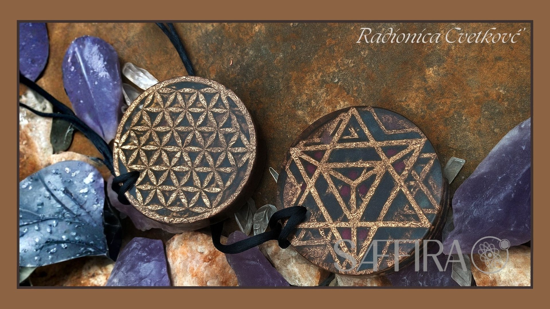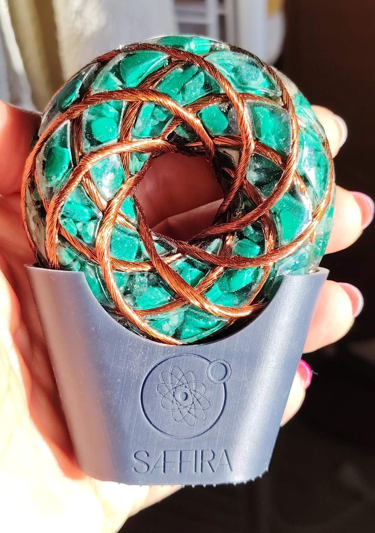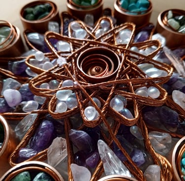 Svaki medaljon je obavijen bakarnom žicom tačno određenog prečnika i broja navoja, što mu omogućava da rezonuje na specifičnoj frekvenciji. U centru se nalazi pažljivo odabran kristal zalivен epoksi smolom, a zatim precizno umotan bakarnom žicom koja kreira tensor polje. Ova kombinacija preuzima, transformiše i neutrališe neželjene elektromagnetne frekvencije iz okoline, vraćajući tvom polju prirodnu ravnotežu i stabilnost.